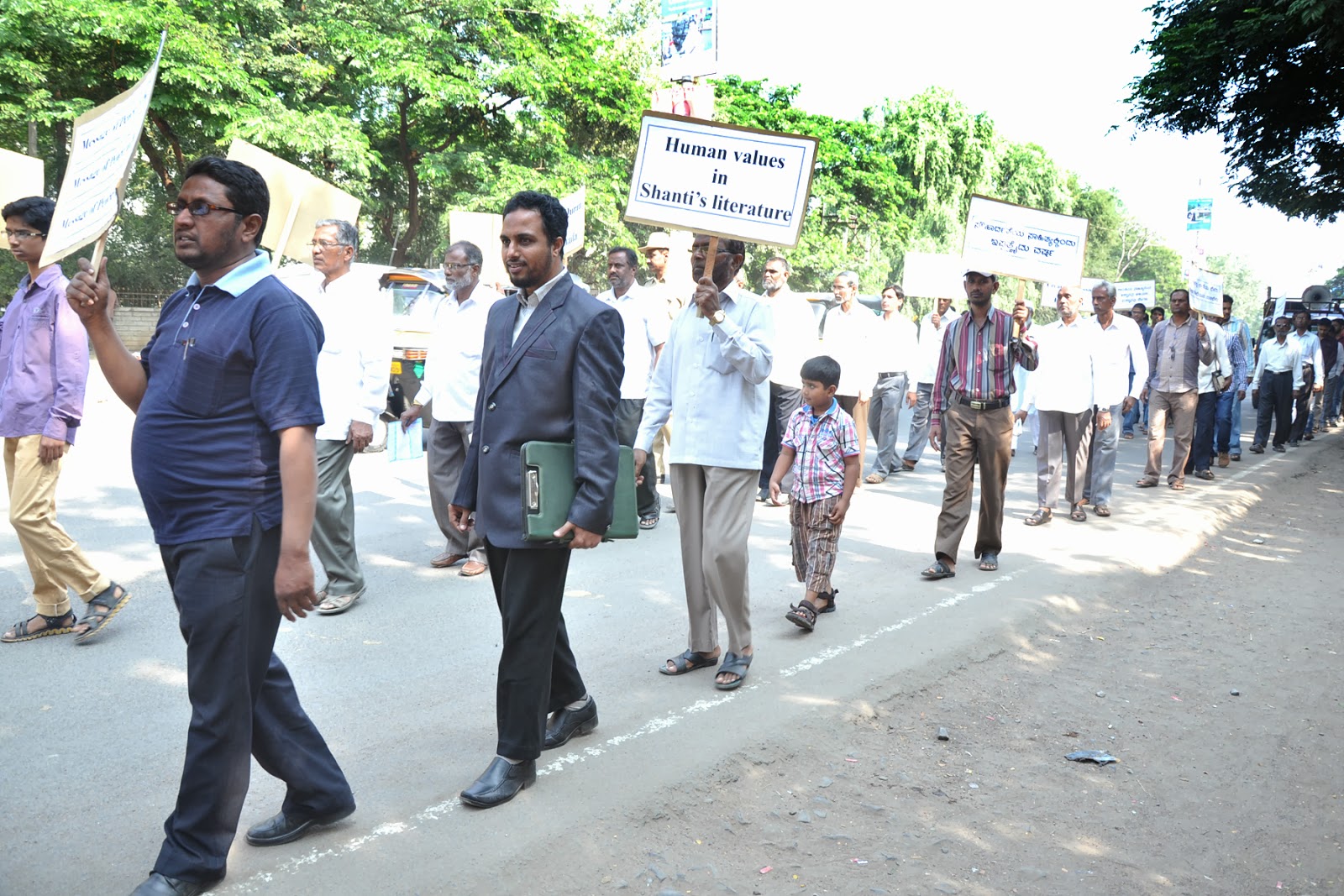 To mark the beginning of the Shanthi Prkashana Silver Jubilee campaign a Peace Rally was organized from Mini Vidhana Soudha to Kannada Bhavan passing through the SVP Circle. A Human Chain was formed for short while at the cirlce to convey the message.